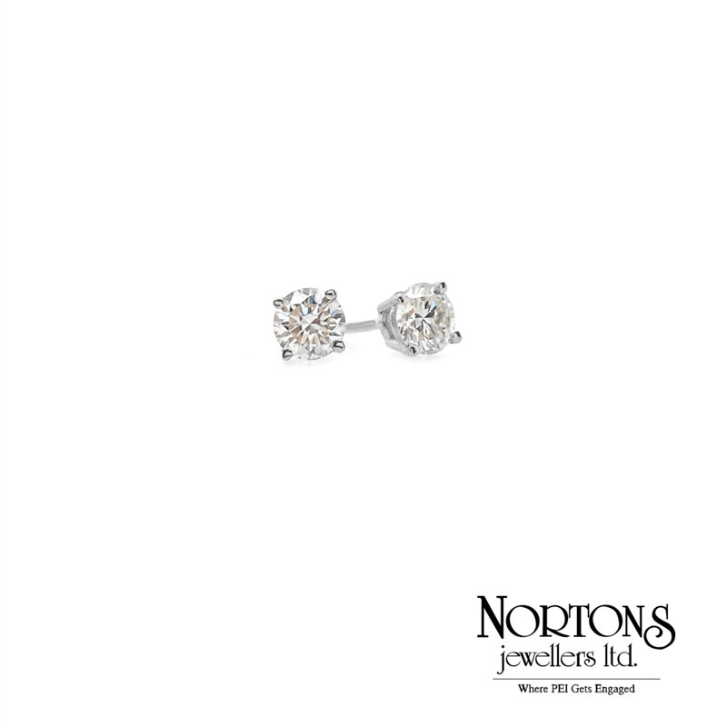 A Pair Of 14 Karat White Gold Earrings. Set In A 4 Claw Setting With Threaded Posts And Backs Are 2 Lab Grown Diamonds (.55 Carat TW).