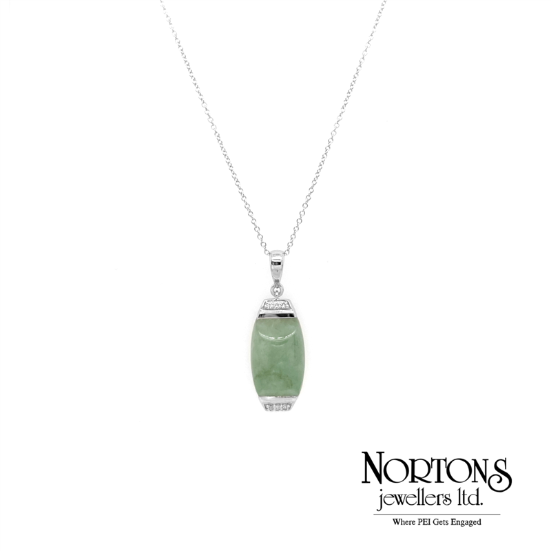 10 Karat White Gold Pendant And Chain Set With A 6.50 Carat Jadeite And Diamonds (.033 Carat TW).