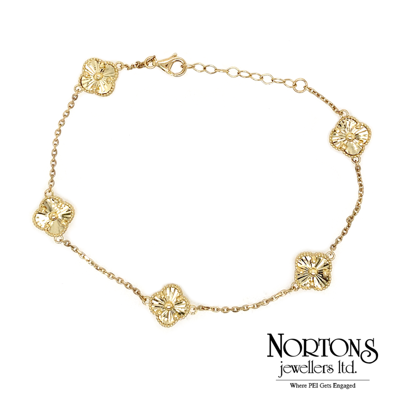 10K Yellow Gold Diamond Cut Clover Bracelet.