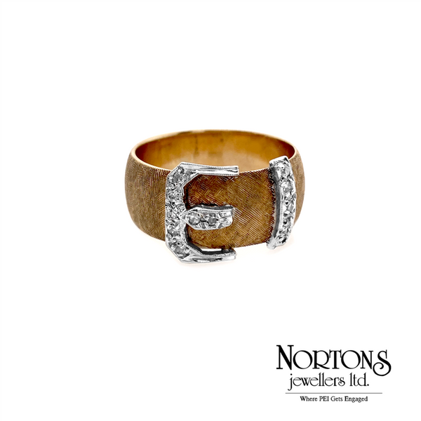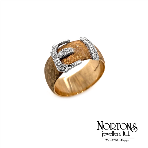 On sale10 Karat Yellow and White Gold Buckle .18 Carat (TW) Diamond Ring