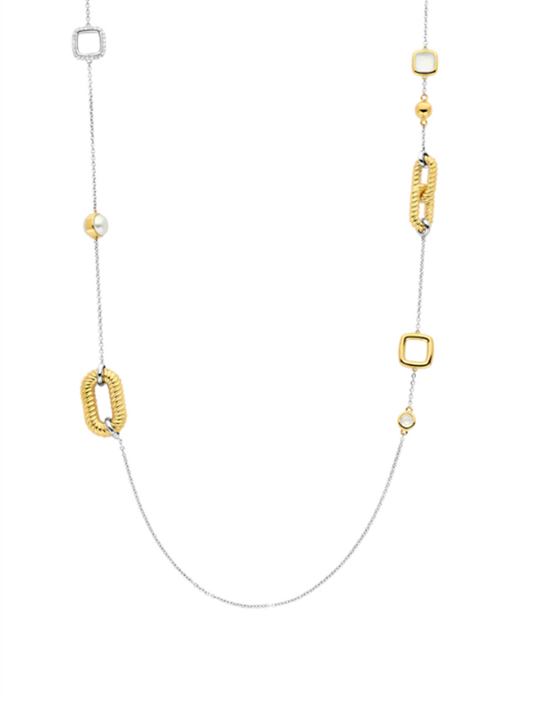 Ti Sento Gold-Plated Silver Necklace With Crystal Pearl, Mother Of Pearl, And CZ.