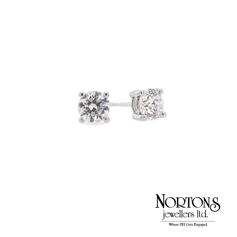 A Pair Of 14 Karat White Gold Earrings. Set In A 4 Claw Setting With Threaded Posts And Backs Are 2 Lab Grown Diamonds (1.56 Carat TW).
