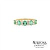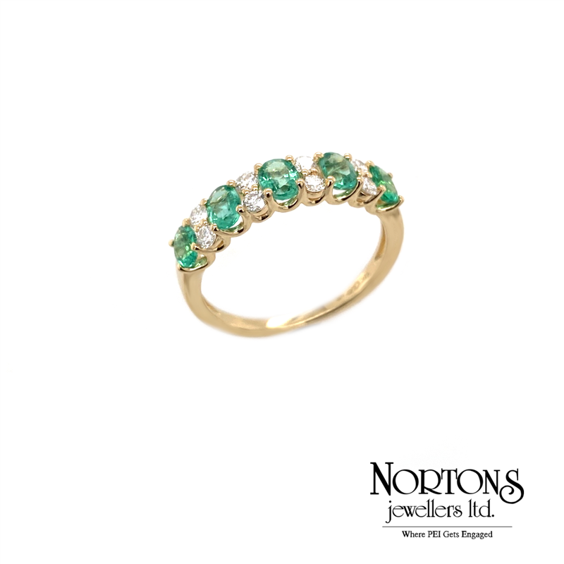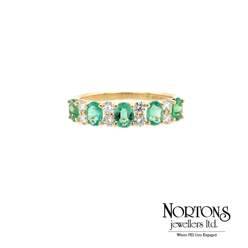 14 Karat Yellow Gold Ring Set With 5 Genuine Oval Emeralds (.70 Carat TW And 8 Diamonds .28 Carat TW, Si Clarity, GH Colour).