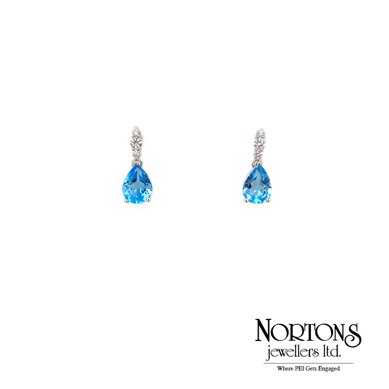 Blue Topaz and Canadian Diamond Earrings in 10 Karat White Gold