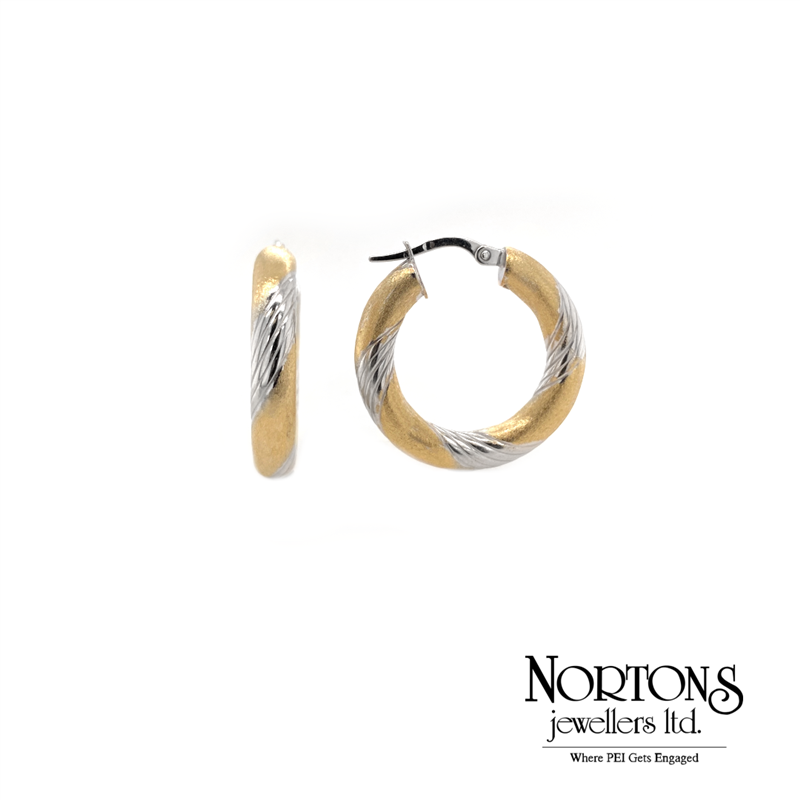 Hoop Earrings in 14 Karat Yellow and White Gold