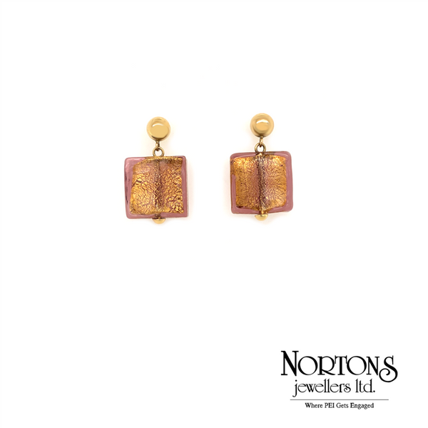 • Vintage Murano Glass Drop Earrings in 14 Karat Yellow Gold