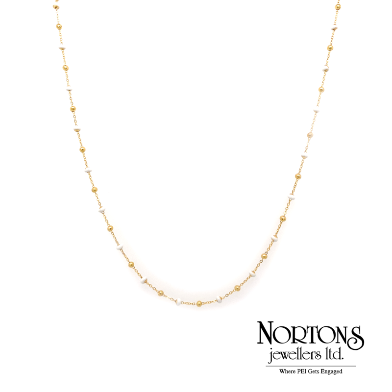 10 Karat Yellow Gold Necklace With White Enamel Beads