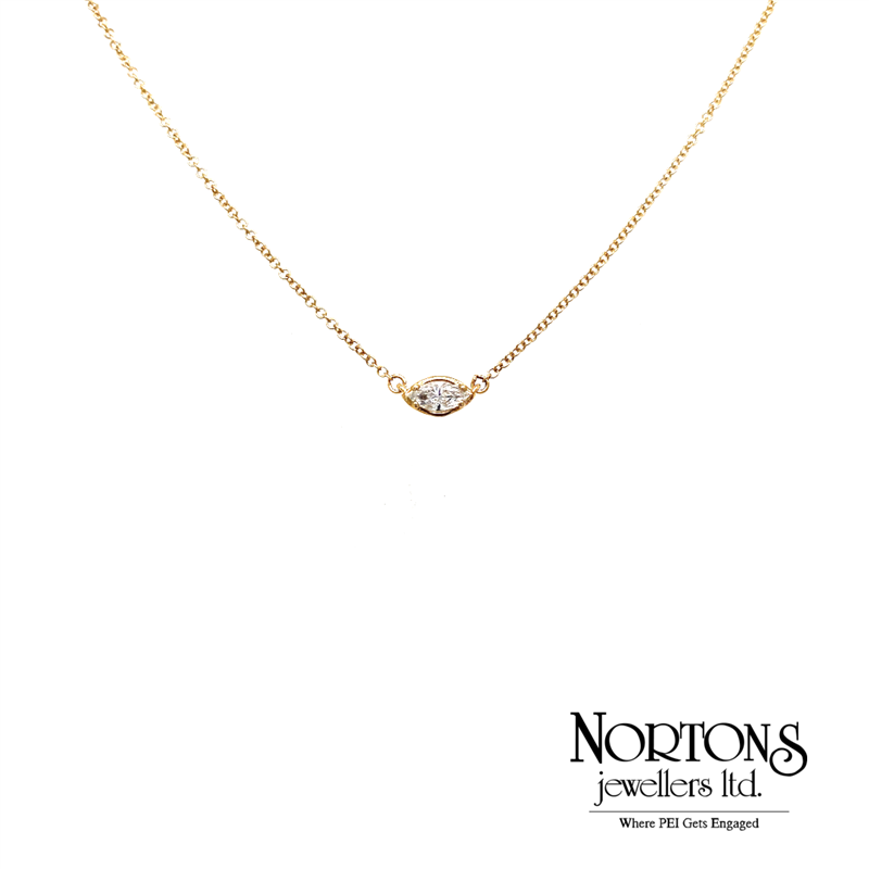 10K Yellow Gold Pendant And Chain Set With A .19 Carat Marquise Canadian Diamond (Si2 Clarity, G Colour).
