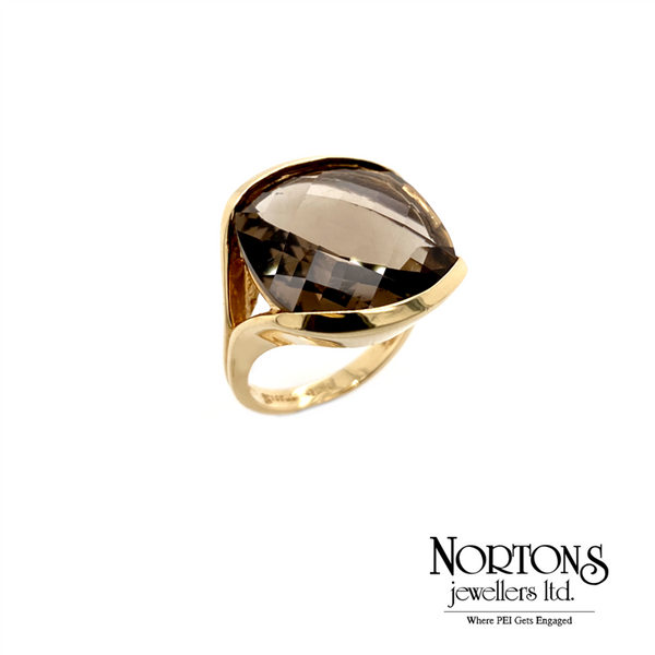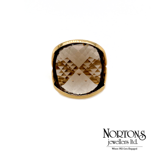 $1,895.00 $947.5010 Karat Yellow Gold Ring With Large Cushion Cut Smokey Quartz