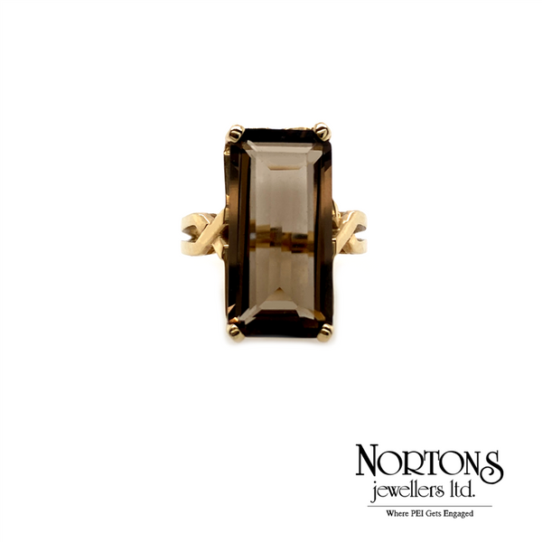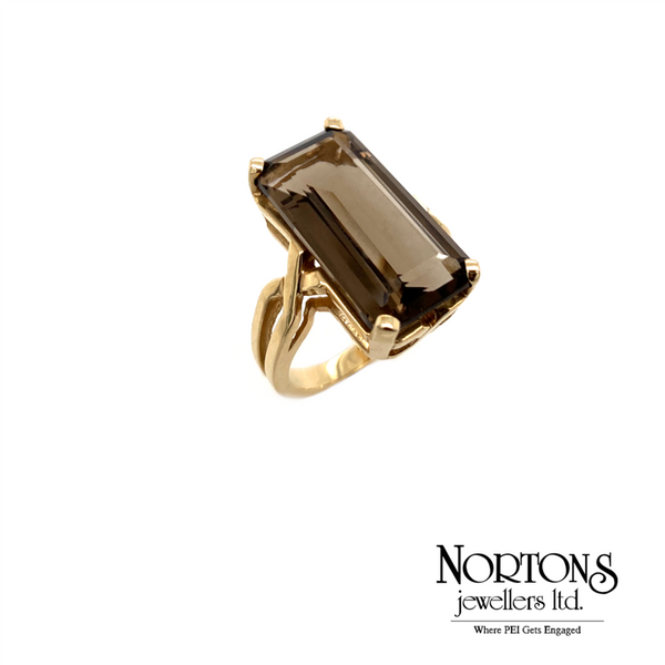 On sale10 Karat Yellow Gold Ring With Large Emerald Cut Smokey Quartz