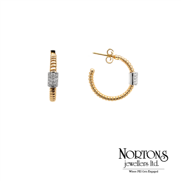 $4,395.00 $3,516.00Diamond Hoop Earrings in 18 Karat Yellow and White Gold (.26 Carat TW)