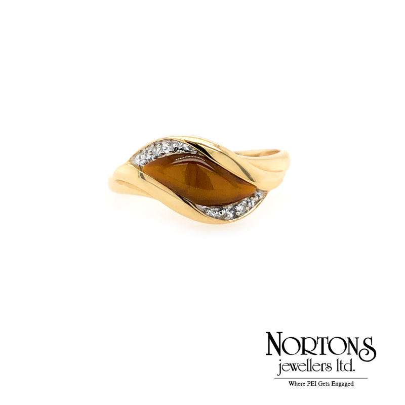 14 Karat Yellow Gold Tigers Eye and Diamond Ring