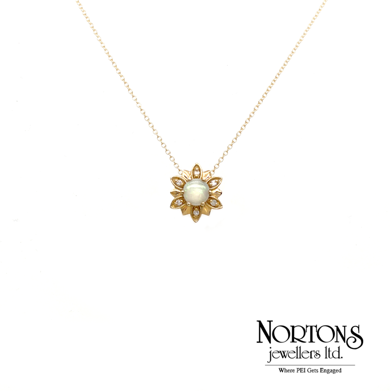 10 Karat Yellow Gold Pendant And Chain Set With A 5mm Opal And 6 Diamonds (.03 Carat TW).