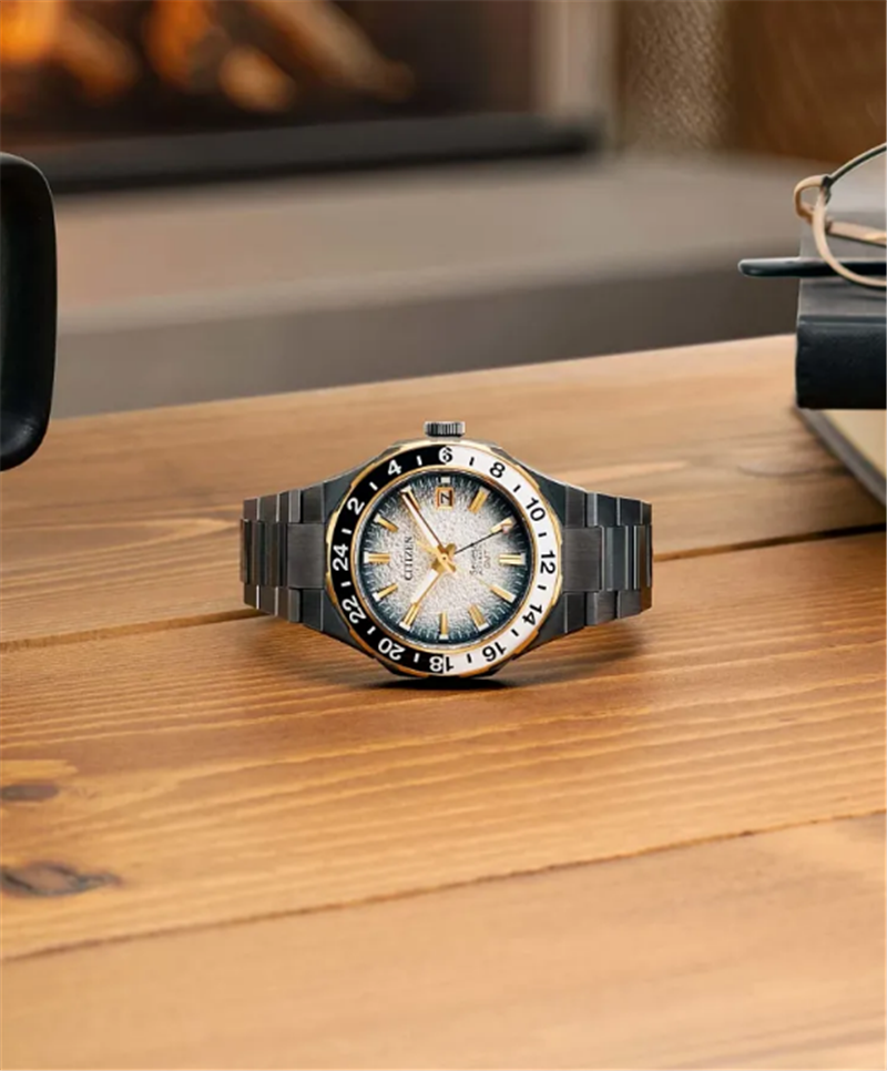 A Tapered, Integrated Stainless Steel H-Link Bracelet Secures The Watch To The Wrist, With Its Design Following The Aesthetic Of The Case Via The Use Of Polished And Brushed Facets. Beneath A Sapphire Crystal, The Watch's Winter-Inspired, Gradient Dial Features Gold-Tone Applied Indices And Lume-Filled Hands, Each Working Together To Offer Incredible Legibility Alongside A Utility-Driven 3 O'clock Date Window; An Arrow-Tipped Hand Assists In Keeping Track Of Multiple Time Zones.