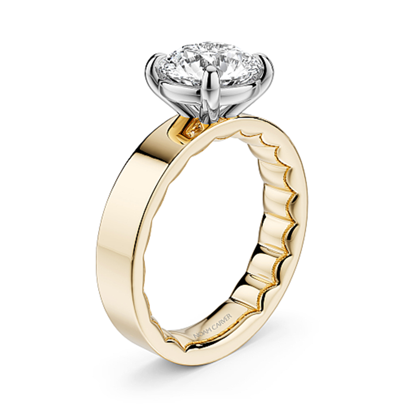 14 Karat Yellow And White Gold ''Noam Carver'' Luna Diamond Ring. Set In 4 Claws Is A 2.00 Carat Round Lab Grown Diamond. (Vs1 Clarity, DEF Colour).
