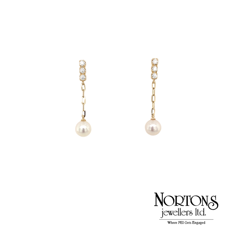 Freshwater Pearl Drop Earrings in 14 Karat Yellow Gold With Diamonds