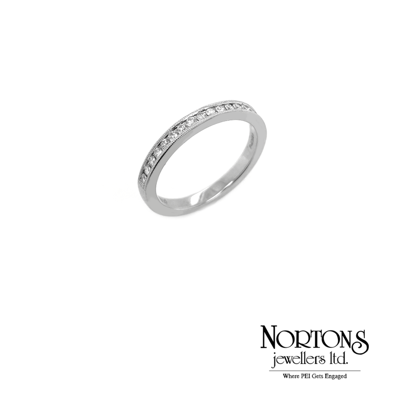 Diamond Band with beaded edges in 18 Karat White Gold– Nortons Jewellers Ltd.
