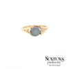 10 Karat Yellow Gold Ladies Ring Set With A Round Hematite And 2 Single Cut Diamonds.