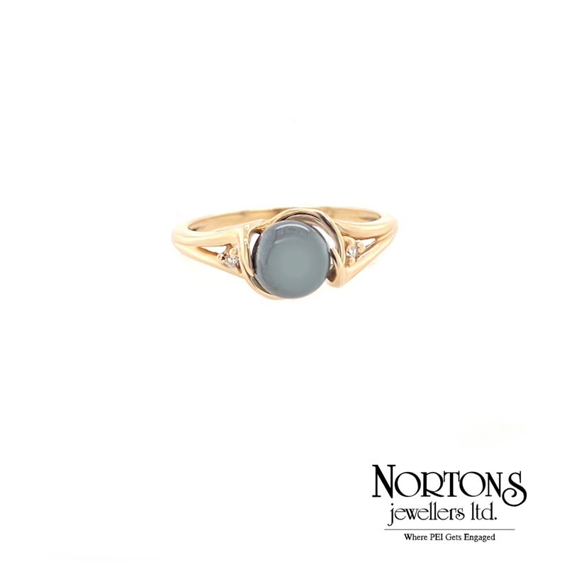 Hematite and Diamond Ring in 10 Karat Yellow Gold