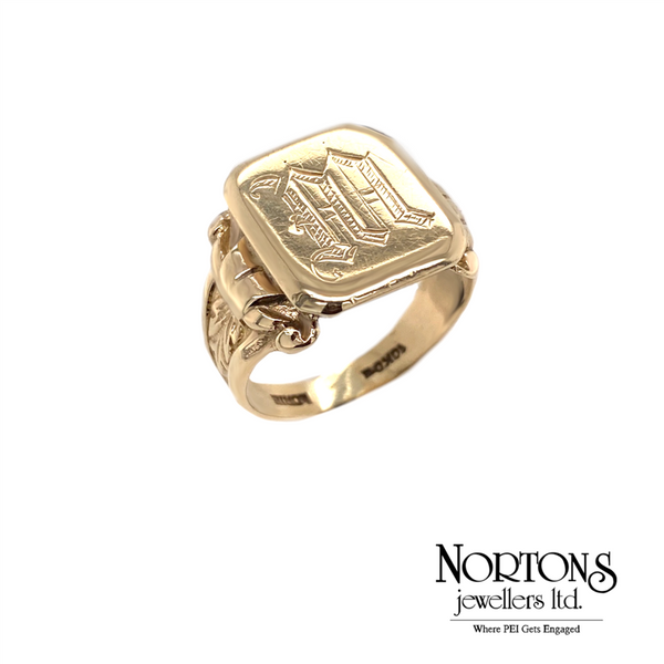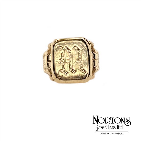 • Antique Signet Ring With "M" Initial in 10 Karat Yellow Gold