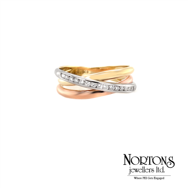 • Tri-Gold Ring in 10 Karat With Diamonds (.15 Carat TW)