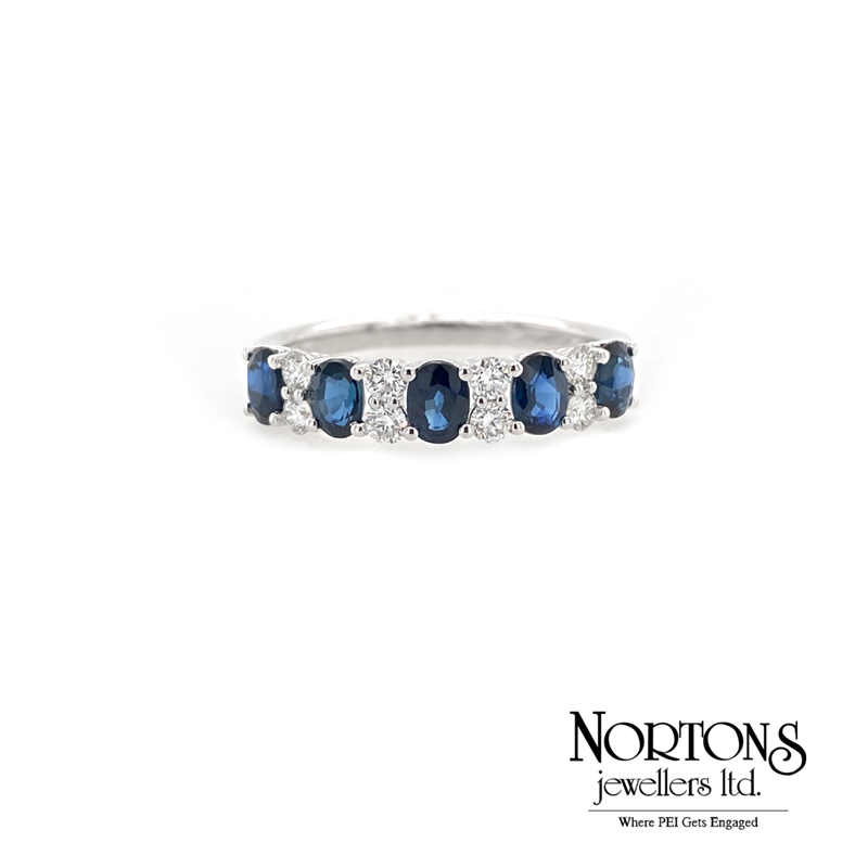 14 Karat White Gold Ring Set With 5 Genuine Sapphires (1.32 Carat TW And 8 Diamonds .28 Carat TW, Si Clarity, GH Colour).