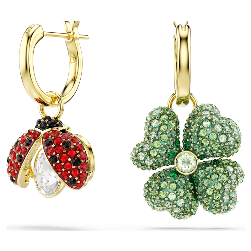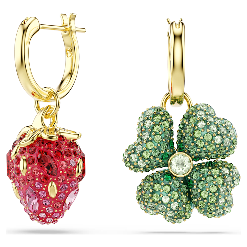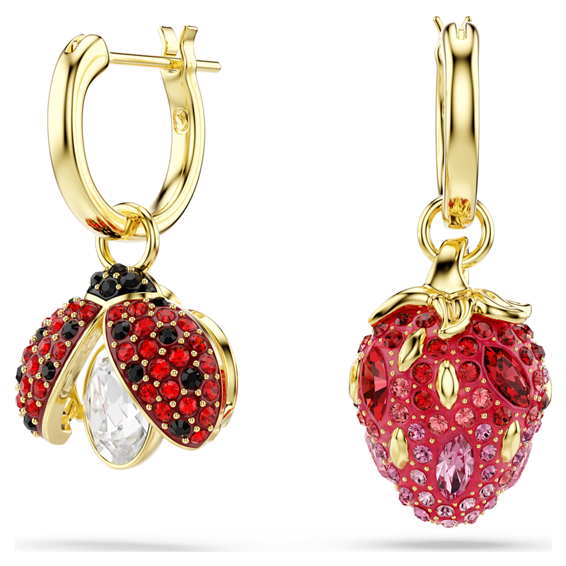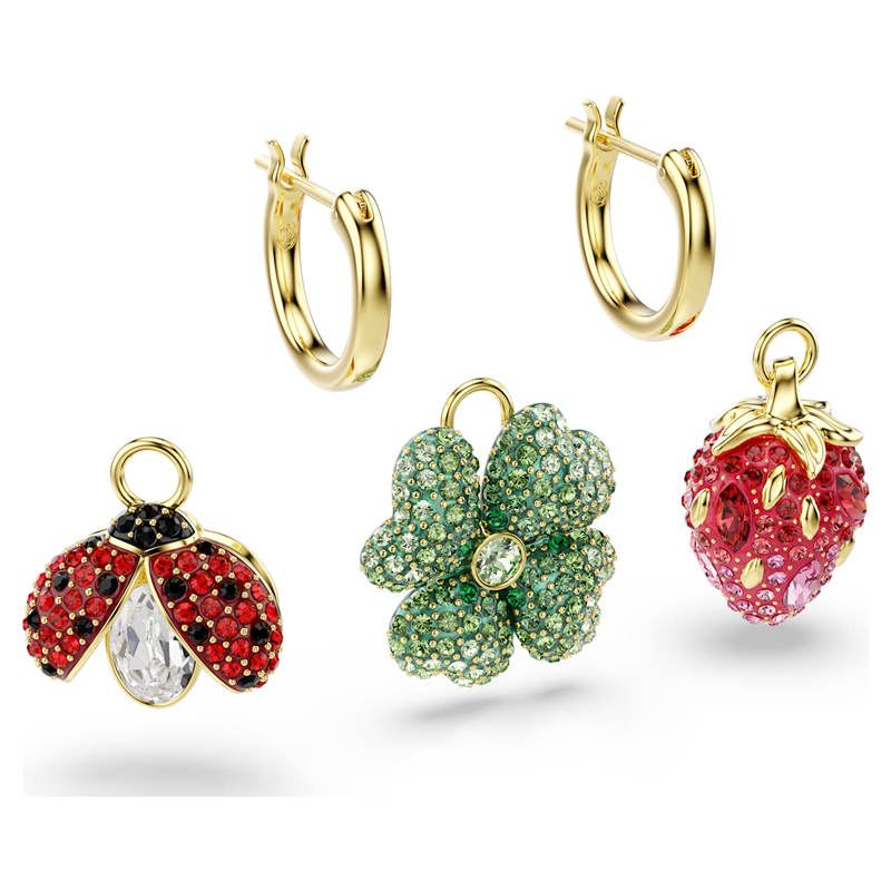 Swarovski Idyllia Gold-Tone Plated Ladybird, Clover, Strawberry Drop Earrings Set (3),