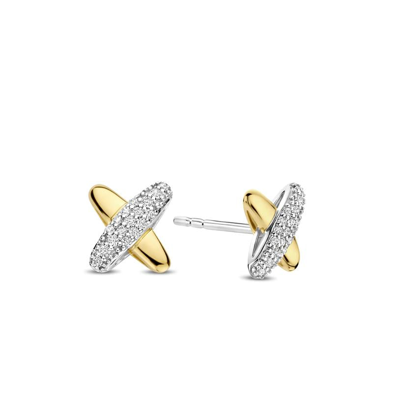 Sterling Silver And Gold Plated Ti Sento Earrings Set With Cz.