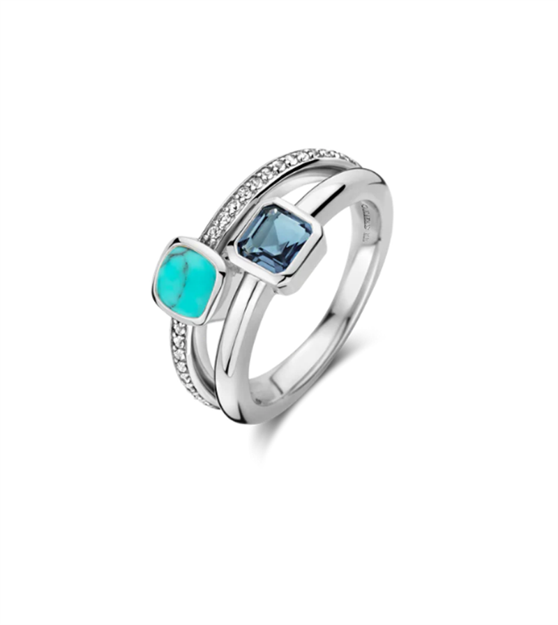Ti Sento Silver Ring With Turquoise, Blue Crystal And Cz.
