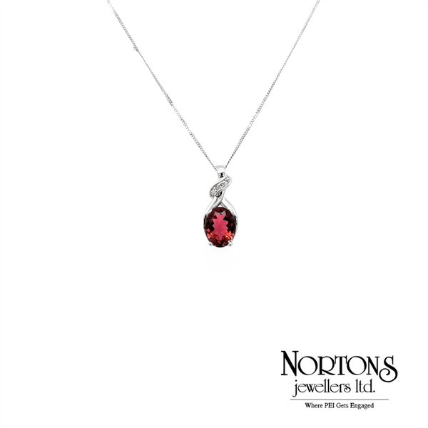 • Pink Tourmaline and Diamond Necklace in 10 Karat White Gold