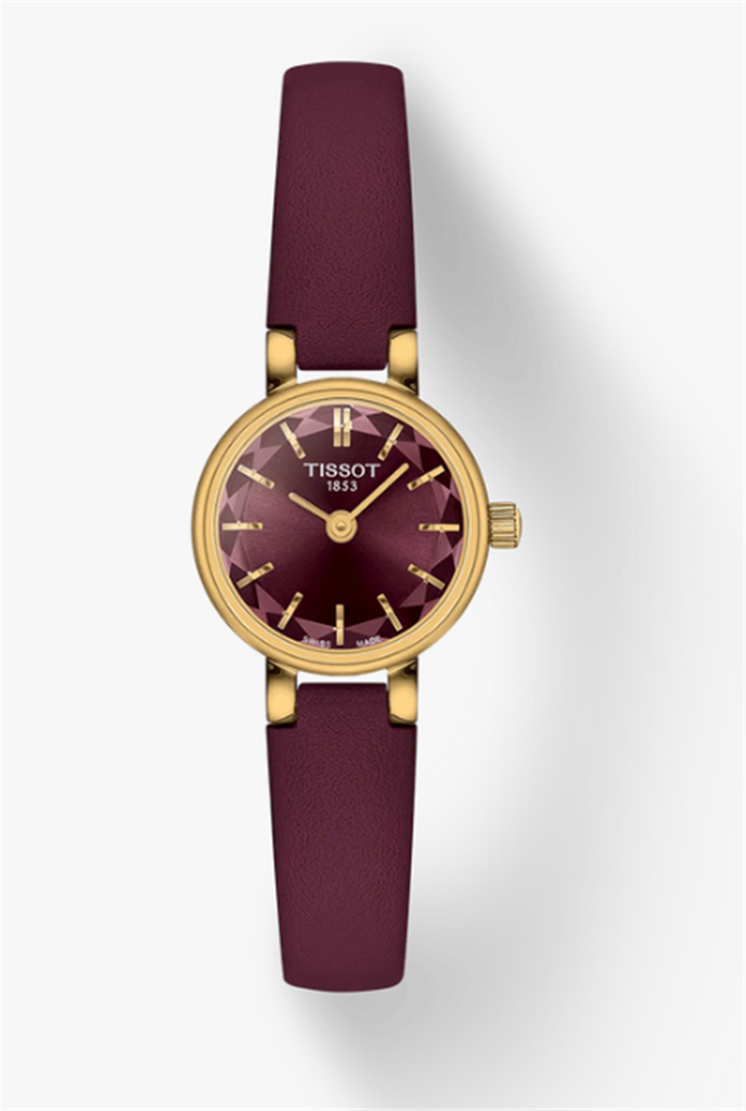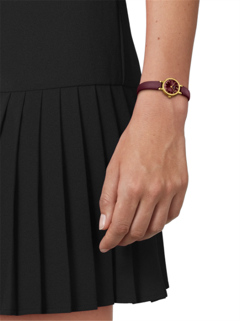This Stunning Piece Conveys The Very Essence Of Class With Its Discrete Yet Absolutely Gorgeous Mini-Size And Feminine Round Case. These Watches Carry Their Name Well As They Are Truly Lovely Timepieces With Completely Irresistible Charm. Discover This Lovely Version With Its Facetted Sapphire Glass, Its Burgundy Dial And Matching Leather Strap, For A Chic And Elevated Look.